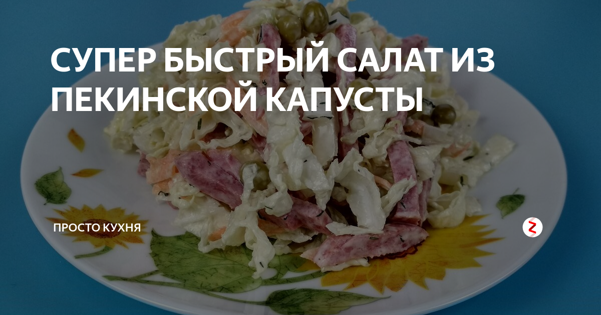 СУПЕР БЫСТРЫЙ САЛАТ ИЗ ПЕКИНСКОЙ КАПУСТЫ Сегодня предлагаем вам рецепт очень быстрого салата из пекинской капусты. Готовится на раз, два, а съедается на раз. Для этого салата ничего не надо варить, только почистить и порезать. Пошаговый рецепт приготовления Супер Быстрого Салата из Пекинской Капусты смотрите в нашем видео.