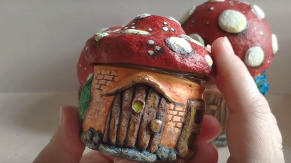 Домики-грибочки из массы папье-маше. Сравнение разных масс, лепка и роспись | Журнал Ярмарки Мастеров