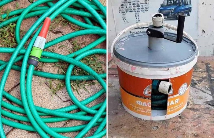 Как своими руками сделать катушку для садового шланга из старого пластикового ведра