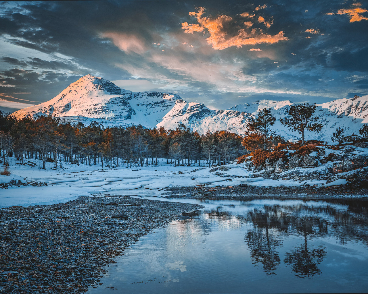 Картинки природа, зима, норвегия, озеро, лес, горы, облака - обои 1280x1024, картинка №381345