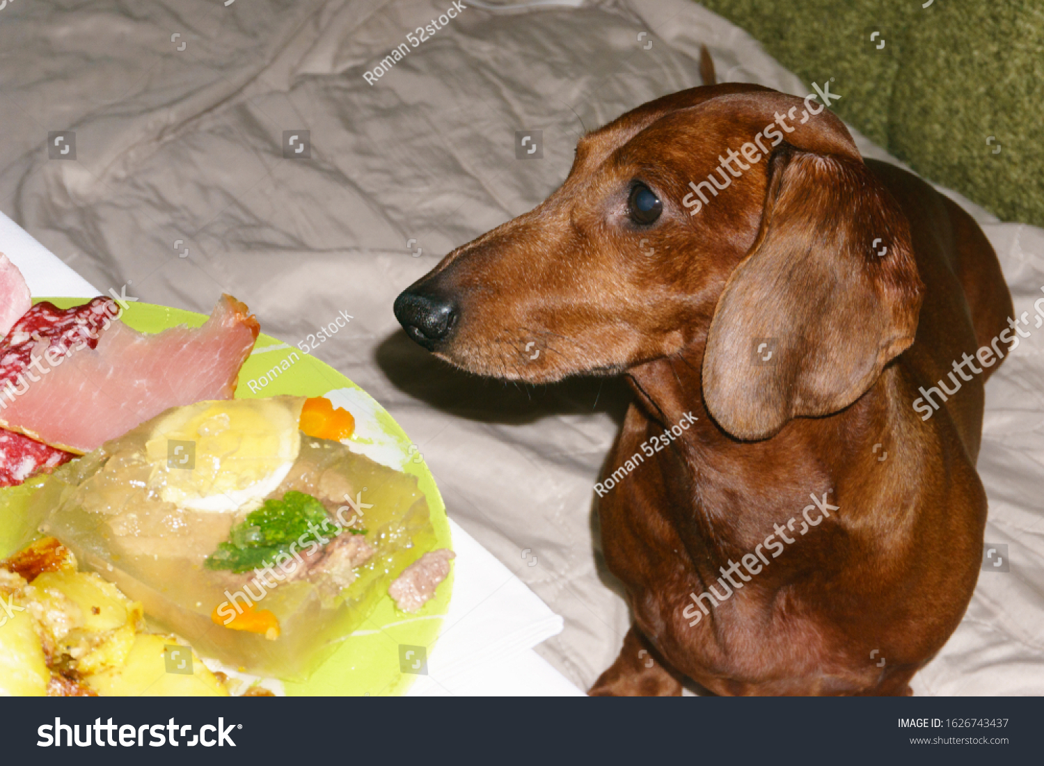 Испорченные Домашние Животные Едят Стол Такса Сидит Фотография Со Стока (Редактировать Сейчас) 1626743437