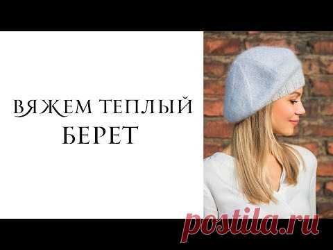 Вяжем теплый берет спицами. Как связать простой берет . Knit a simple beret.