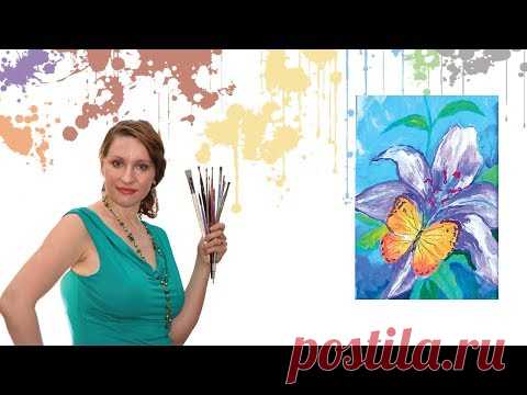 Как рисовать лилию с бабочкой акрилом или гуашью