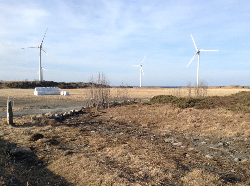 На берегу Норвежского моря довольно сильная роза ветров, поэтому тут стоит достаточно много ветряных электростанций