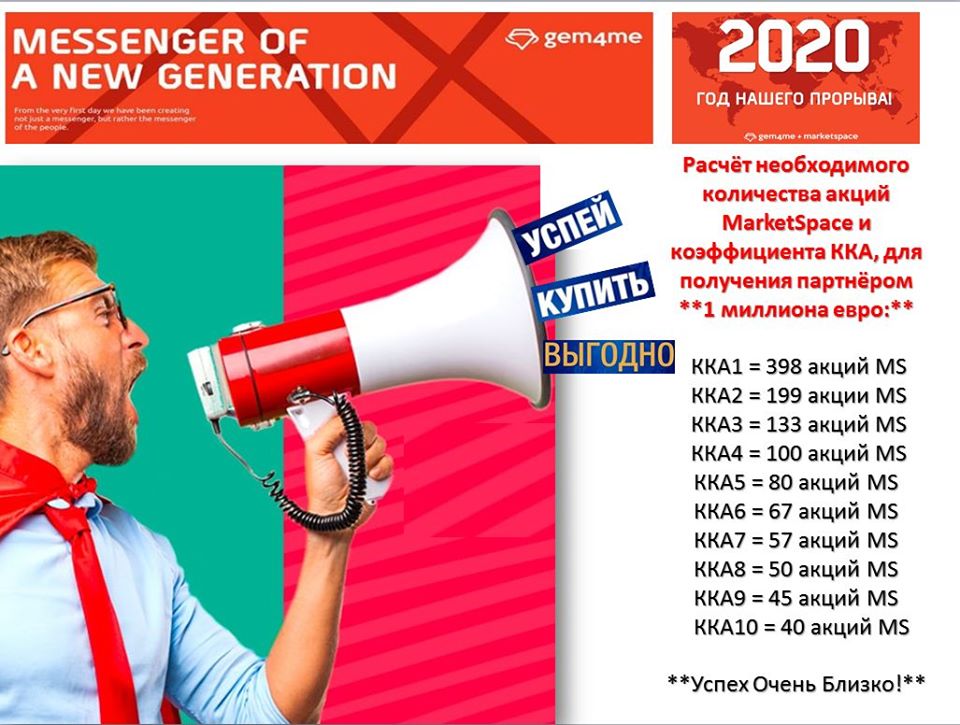 #MarketSpace. Присоединяйтесь!!! Выходите на связь. Помогу разобраться в проекте. Вы можете без оплаты открыть свой бизнес-центр: https://gem4me.com/business_center/session/signup/?sponsor=sirin самостоятельно все изучить, а быть или не быть вашей новой квартире, дома, дачи, машине, путешествиям - решать вам!