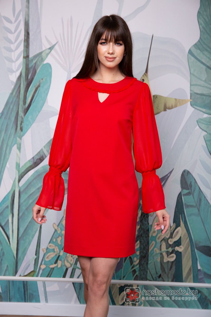 Kod:127 1915 красная помада размер 44-48, описание, отзывы Проложите свой путь, через праздничные дни, в нашем мини платье прямого силуэта. Рукава из полупрозрачного шифона фиксируются на руке за счет прострочек эластичной тесьмой. Для правильного контура на спинке есть выточки, в средний шов вставлена молния. Пикантный вырез на спинке застегивается на пуговицу. Длина платья 88 см, длина рукава без напуска 64см.