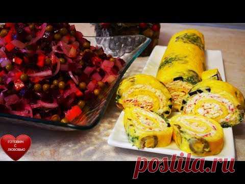 ПРАЗДНИЧНО и ПО НОВОМУ.ВИНЕГРЕТ салат с запеченными ОВОЩАМИ.Рулет из омлета с крабовыми палочками