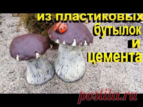 Грибочки из пластиковых бутылок и цемента.champiñones de botellas de plástico y cemento.
