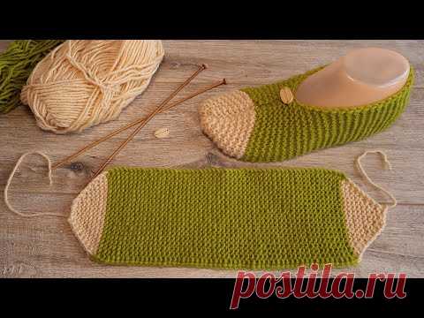 Вязаные следки за час спицами ⌚ Easy Knitted Slippers per hour ⌚ örme terlik
