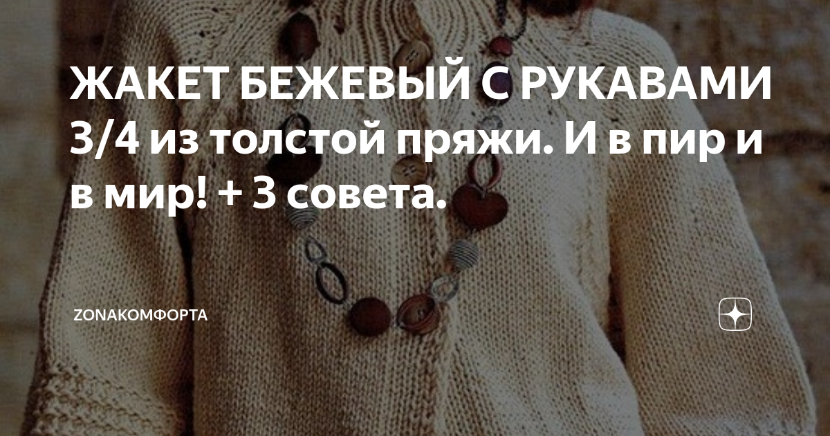 ЖАКЕТ БЕЖЕВЫЙ С РУКАВАМИ 3/4 из толстой пряжи. И в пир и в мир! + 3 совета. Очень универсальная модель. Можно носить, любоваться собой и вы непременно обратите на себя внимание!