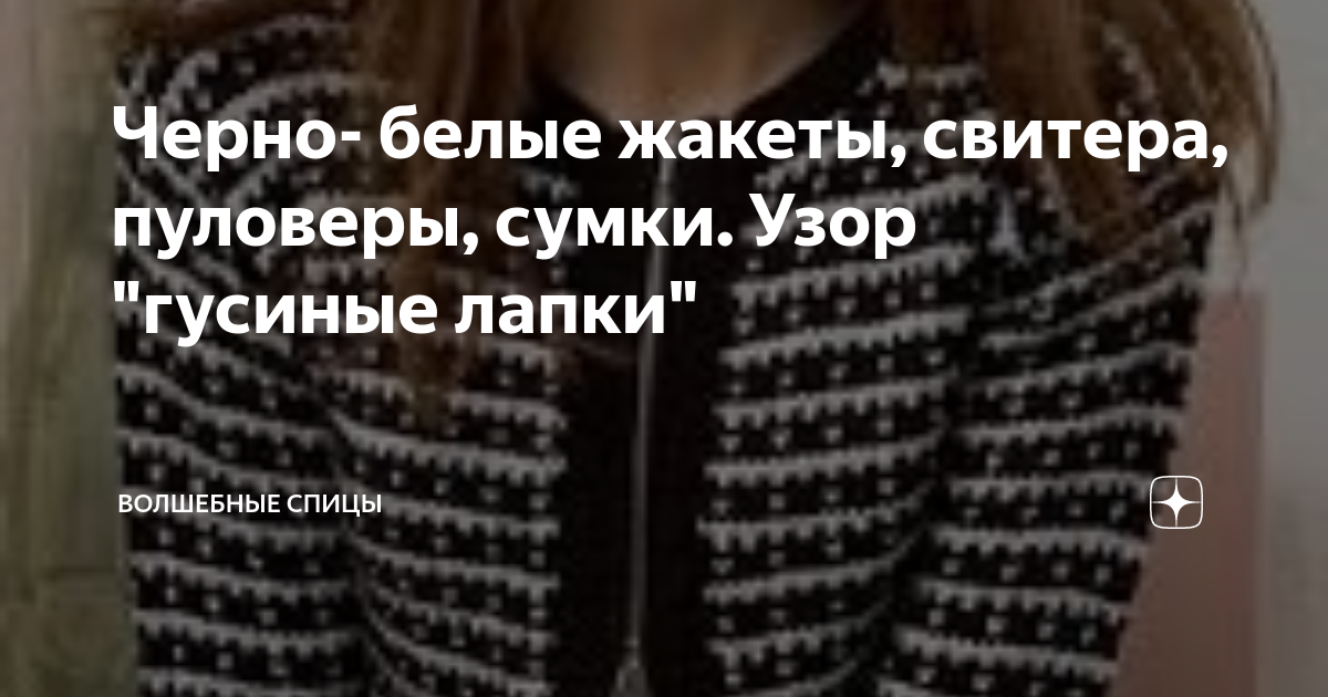 Черно- белые жакеты, свитера, пуловеры, сумки. Узор "гусиные лапки" Одежда в черно- белой гамме- это классика, которая никогда не выйдет из моды. Сегодня я предлагаю ознакомиться с моделями, связанными спицами в стиле "Шанель", а также с современными стильными пуловерами, жакетами и сумками с черно-белыми узорами. Материалы для вязания: пряжа (состав — 100% шерсть, толщина нити — 82 м/50 г) – по 100 г черного и белого цветов; спицы № 3,5, дополнительная спица