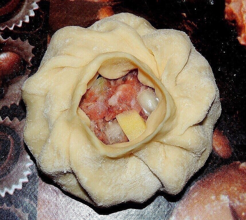 ВКУСНЕЙШИЙ и НЕЖНЕЙШИЙ "Вак балиш" Вам потребуется: Мука - 700 гр., Масло сливочное - 250 гр., Кефир - 500 мл., Сода чайная - 1 ч.л., Соль - 1 ч.л. Начинка: Говядина (мякоть) - 0,5 кг., Картофель (средний) - 7 шт., Лук репчатый - 3 шт., Соль, перец черный молотый - по вкусу Для бульона: Вода - 300 мл., Масло сливочное - 50 гр. Соль - 1/3 ч.л. Для смазывания пирогов - 1 яйцо. Как готовить: 1. В чашку всыпать 700 гр. муки. Натереть(туда же) на тёрке холодное сливочное ма...