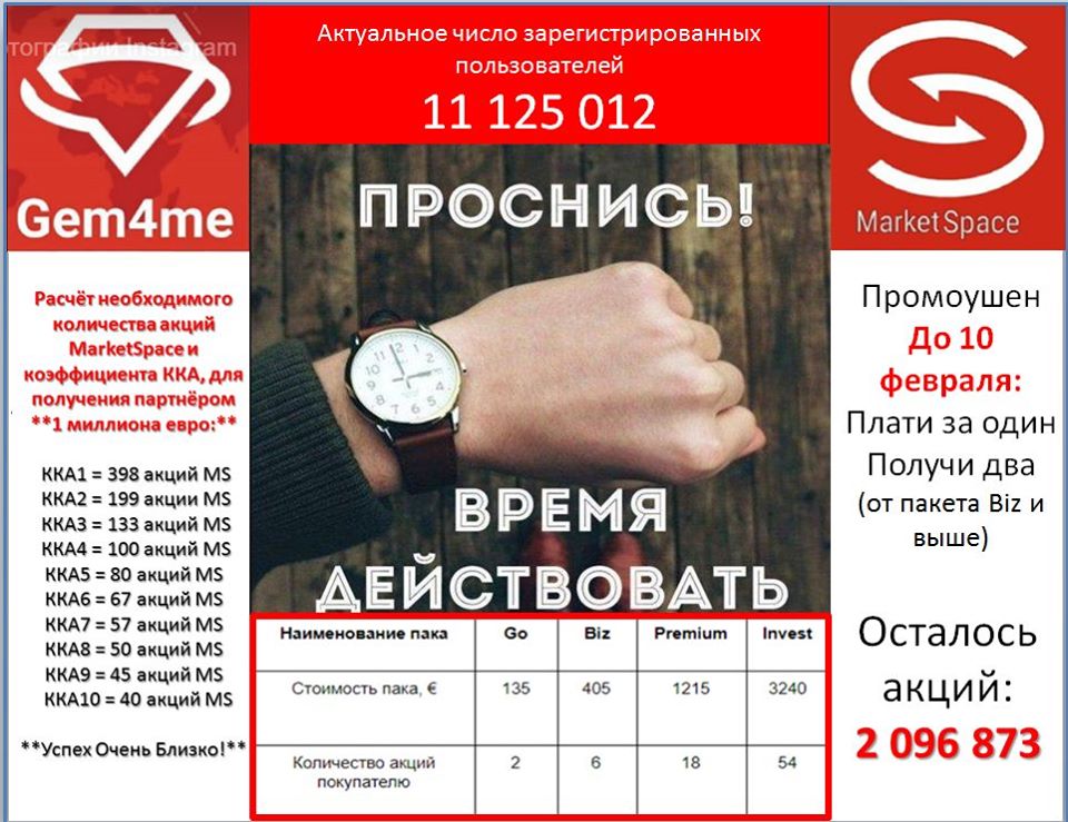 #Gem4me+MarketSpace Сегодня ещё есть возможность успеть стать совладельцем огромного международного холдинга. Это единственная в мире компания, которая предлагает обычным людям стать легальными совладельцами перспективного международного проекта и создать фамильный капитал! Присоединяйтесь!!! Выходите на связь. Помогу разобраться в проекте. Дополнительную информацию вы можете получить в своем бизнес кабинете - регистрация бесплатная