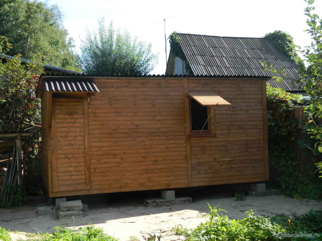 Как из простой бытовки сделать полноценный сарай Старый сарай на даче постройки 1971 г. отжил свой век — весь покосился, крыша прохудилась, фундамент разрушился. Надо было срочно делать новый. Покопавшись в Интернете, я остановил свой выбор на готовой бытовке размерами 5х2,3 м. За 26000 рублей я получал бытовку с полом из обрезной доски, обшитую