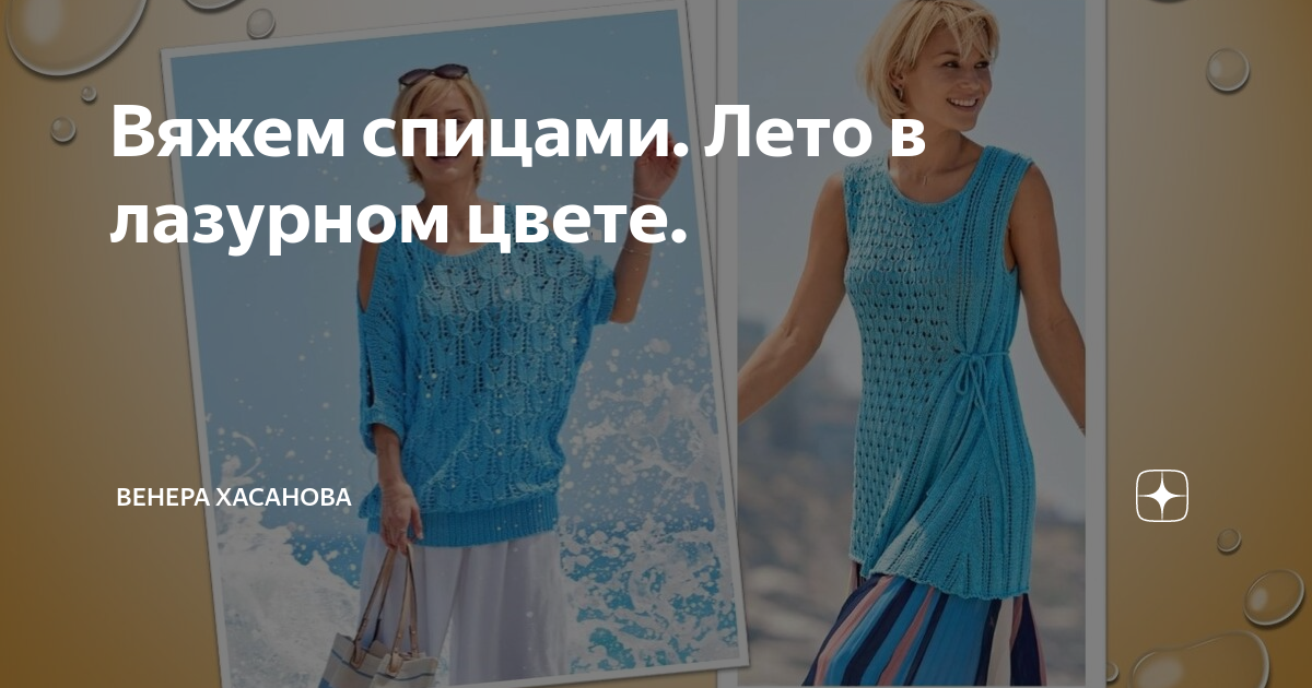 Вяжем спицами. Лето в лазурном цвете. Скоро наступит самая долгожданная пора для модниц. Летом можно экспериментировать с образом, как только душа пожелает. Модные дизайнеры говорят, что в летнем сезоне будут в моде как длина макси, так и длина мини. Цвета одежды летним сезоном 2020, тоже будут самые разнообразные. С такими разными моделями одежды можно будет составлять много образов на любой вкус. Мода не постоянна и цвета, которые