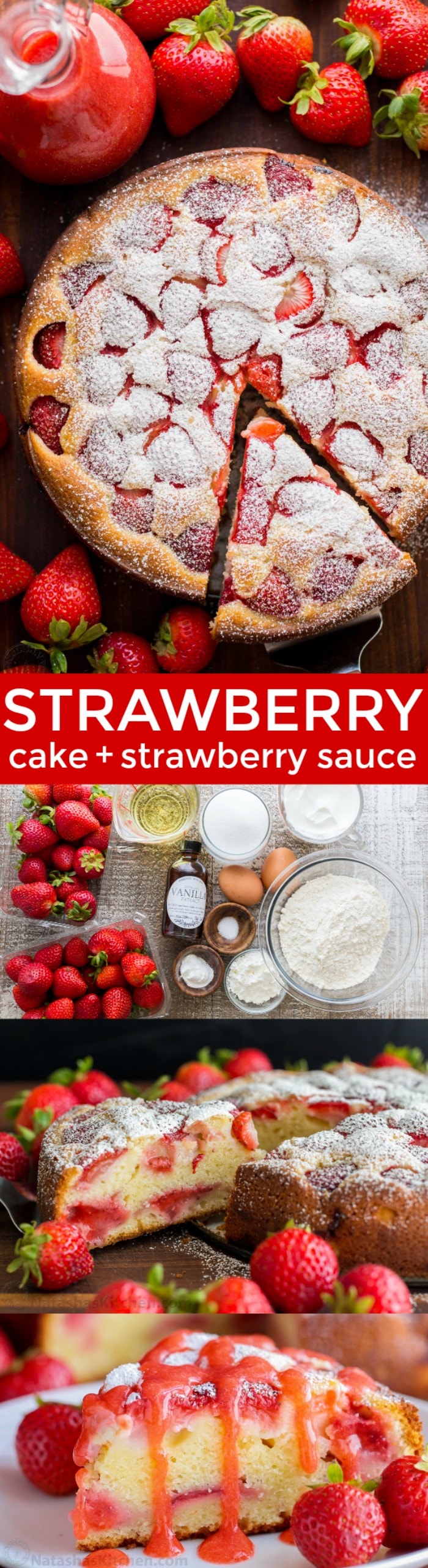 Easy Strawberry Cake with Strawberry Sauce - NatashasKitchen.com