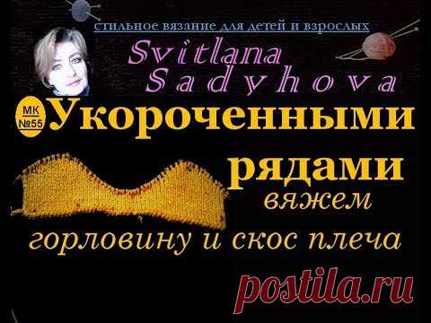 Укороченными рядами вяжем горловину и скос плеча. Вязание спицами. Укороченные ряды для начинающих