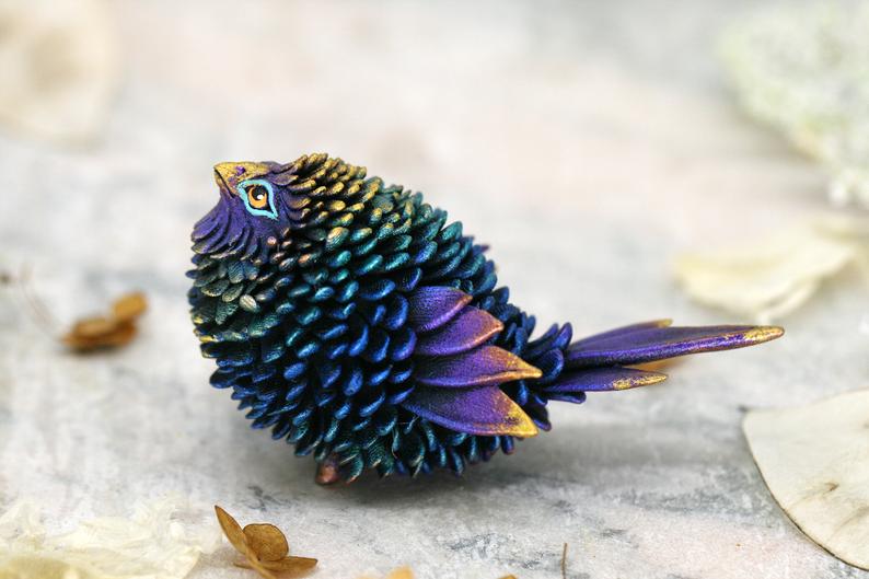 Fluffy Bird Figurine Sculpture Totem polymer clay figures | Etsy