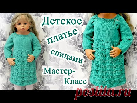 Детское платье спицами Реглан сверху Мастер класс