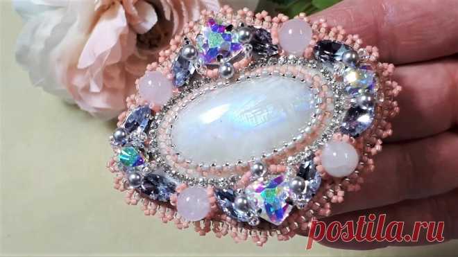 Брошь " Нежность" Брошь вышита из адуляра, но подойдет и камень розового кварца. А так же- кристаллы в цапах треугольные-https://letyshops.com/r/aliexpress-1os7nyy13pog44 шато...