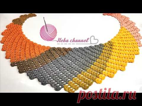 كروشيه اسكارف / شال/كوفيه على شكل هلال الشرح بالتفصيل خطوه بخطوة