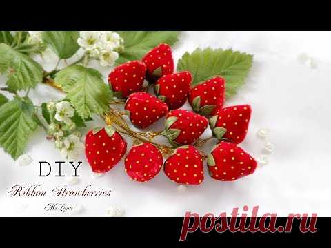 КЛУБНИКА ИЗ ЛЕНТЫ, МК / DIY Velvet Ribbon Strawberries