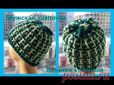 Мужская ШАПКА узором" Гусиные лапки" вязание крючком , crochet hat(Шапка № 168)