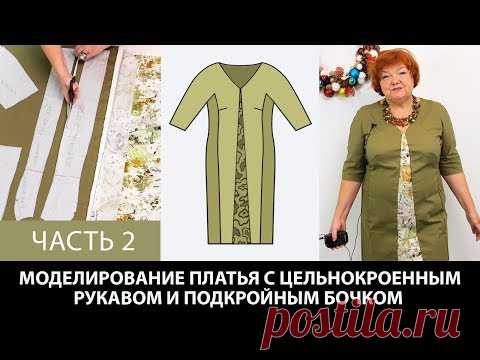 Моделирование платья с цельнокроеным рукавом подкройным бочком и вставками из другой ткани Часть 2