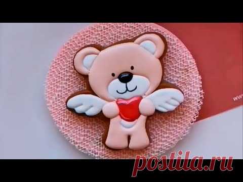 Роспись имбирного пряника «Мишка-Ангел» [мастер-класс]