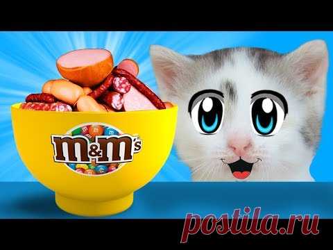 ПРИКОЛЫ С КОТАМИ! СМЕШНОЙ КОТ МАЛЫШ И КОШЕЧКА МУРКА едят КОЛБАСНЫЙ m&ms ! НОВЫЕ ПРАНКИ НАД КОТАМИ