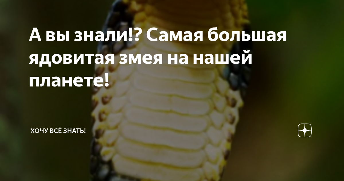 А вы знали!? Самая большая ядовитая змея на нашей планете! Всем привет! Сегодня я хотел бы вам рассказать о самой большой ядовитой змеёй на земле, интересно? Тогда погнали!