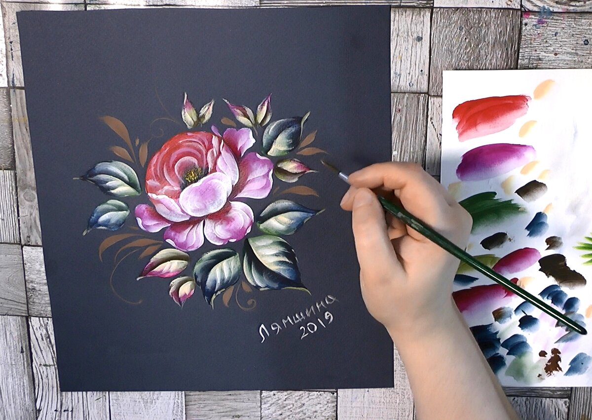 Рисуем розу акриловыми красками | О Творчестве с Ириной Лямшиной | Яндекс Дзен
