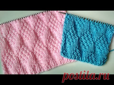 Узор спицами "Рельефные ромбы". Двухсторонний узор - идеально для пледа
