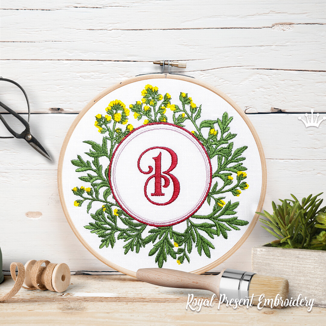 Полынь рамка для монограммы Дизайн машинной вышивки
