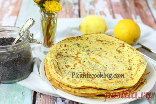 Налисники з маком та цедрою лимона Ароматні тонкі налисники з маком та лимонною цедрою. Смакують вони не тільки з десертними додатками.