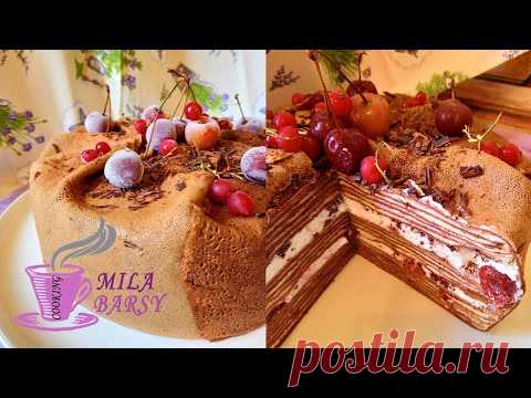 Шоколадный блинный торт "Темный лес" | Очень эффектный!