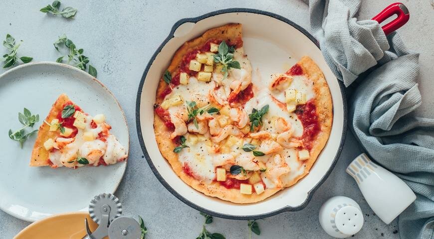 Гавайская пицца с ананасом и окороком, приготовленная на сковороде | Едим-дома | Яндекс Дзен