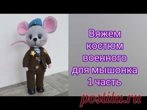 Вяжем крючком костюм мышонку военному (десантник или пограничник), 1 часть