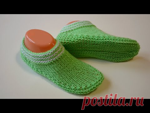 Тапочки - следки на двух спицах, легко и интересно вязать!
