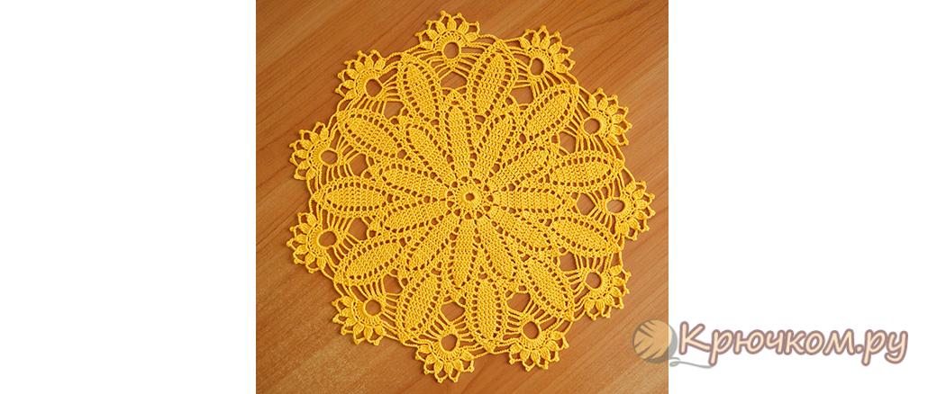 Салфетка «Солнышко» крючком (видео мастер-класс) Предлагаем связать вместе с нами яркую салфетку "Солнышко" крючком. В статье вы найдете схему салфетки, фото готового изделия и подробное описание процесса вязания.