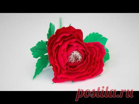 Идея: Валентинка на 14 февраля. Цветок - Роза Сердце с конфетой из гофрированной бумаги