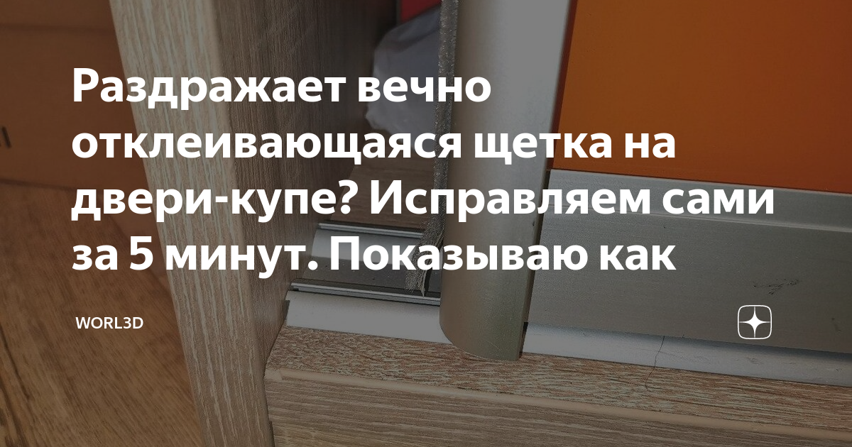 Раздражает вечно отклеивающаяся щетка на двери-купе? Исправляем сами за 5 минут. Показываю как Эта публикация будет не про скрутки, не про хомутатель и даже не про 3D-печать :))) Перейдем сразу к сути статьи без всяких прелюдий 😉