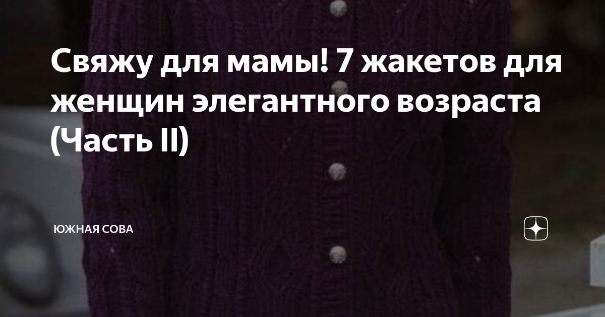 Свяжу для мамы! 7 жакетов для женщин элегантного возраста (Часть II) Выбирая подходящий жакетик для любимой мамы, я нашла много интересных вариантов. В одну подборку они не вместились. Так и появилась вторая часть этой мини-коллекции.