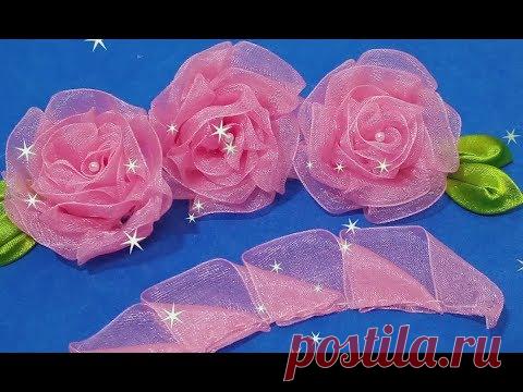 DIY-MINI ROSA DE ORGANZA RÁPIDA E MARAVILHOSA!!!