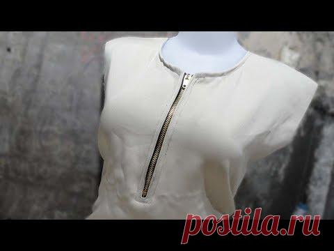 tutorial menjahit gamis leher bundar dengan bukaan resleting jeans