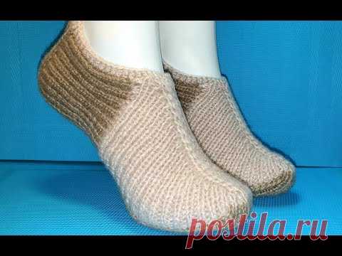 #460 УДОБНЫЕ БЕСШОВНЫЕ ТАПОЧКИ ,СВЯЗАННЫЕ РЕЗИНКОЙ 1×1.МАСТЕР КЛАСС.