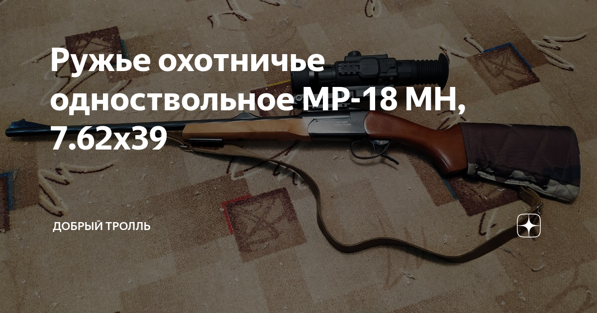 Ружье охотничье одноствольное МР-18 МН, 7.62х39 Фото из личного архива. Давно думал написать про своё оружие калибром 7.62х39. Сделать кратенький обзор что ли. Сразу пишу, всем считающим себя умными комментарии типа-это киплауф или штуцер, смотрите фото ниже. Кто не понимает поясняю. На фотографии паспорт оружия прилагаемого заводом изготовителем, поэтому все вопросы и пожелания связанные с переименованием данного ствола пожалуйста направляйте