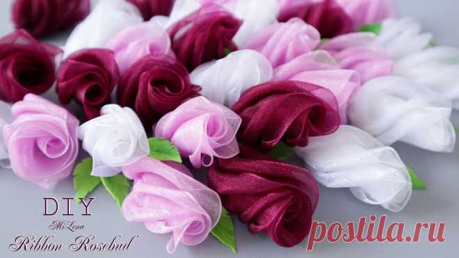 БУТОН РОЗЫ, МК / DIY RIBBON ROSEBUD ДЛЯ ОДНОГО БУТОНА ПОНАДОБИТСЯ: ✓ Органза (ширина 4 см) - 66 см ✓ Листики, МК - https://youtu.be/MlhR_bzIb9g ✓ Флористическая проволока ✓ Флористическая лента...