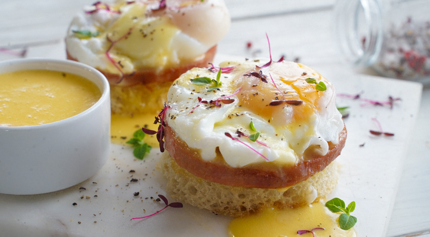 Яйца бенедикт - Едим-дома Говорят, что рецепт блюда Яйца бенедикт был придуман в 1890-х годах в Нью-Йорке. Мол, однажды