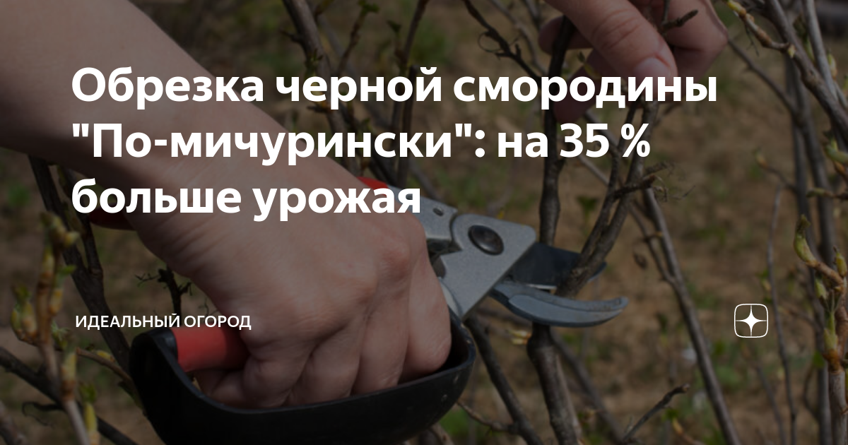 Обрезка черной смородины "По-мичурински": на 35 % больше урожая Своевременная и правильная обрезка ягодных кустарников – важная процедура, она влияет на урожайность, зимостойкость и здоровье куста. Простая и понятная схема “по-мичурински”, в соответствии с которой производится обрезка черной смородины, на треть повышает урожайность ягодника. Формирование кроны производится в несколько этапов и требует минимум действий со стороны садовода.